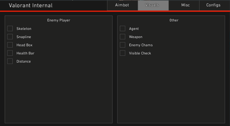 -Supports Windows 10 : (all versions) / Windows 11 Features: Enemy ESP, Enemy info(position/health bars/agent etc), enemy lines, aimbot with key selector, visible checks, aim FOV, aim bone selector, recoil control, unlock skins